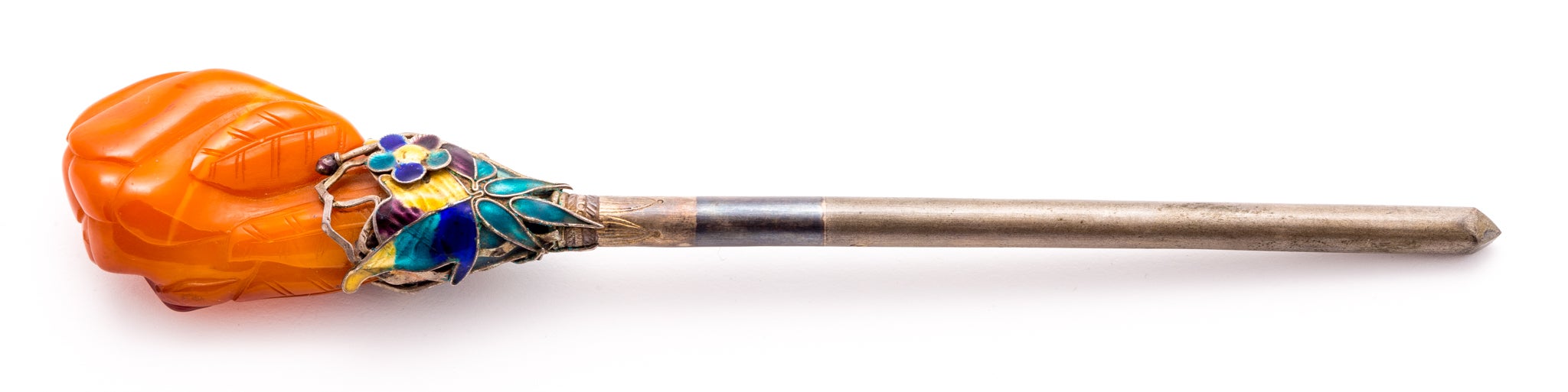 The use of glass and enamel also has a rich history as well. While beautiful in their own right, glass and enamel were incorporated into metal designs as a way to imitate various gemstones, a cost-effective enhancement.